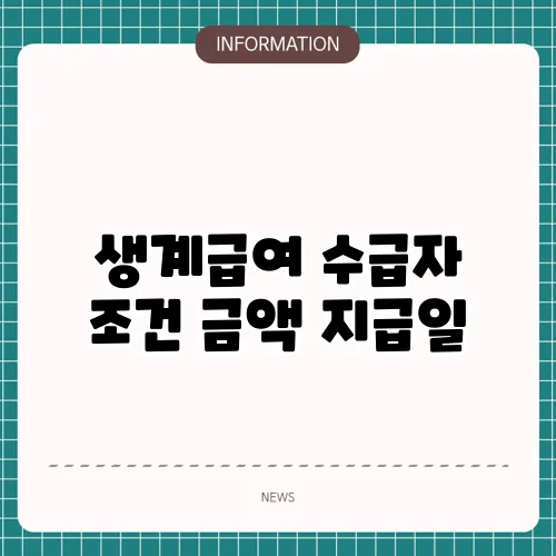 생계급여 지급일과 지원금액, 언제 어떻게 받나